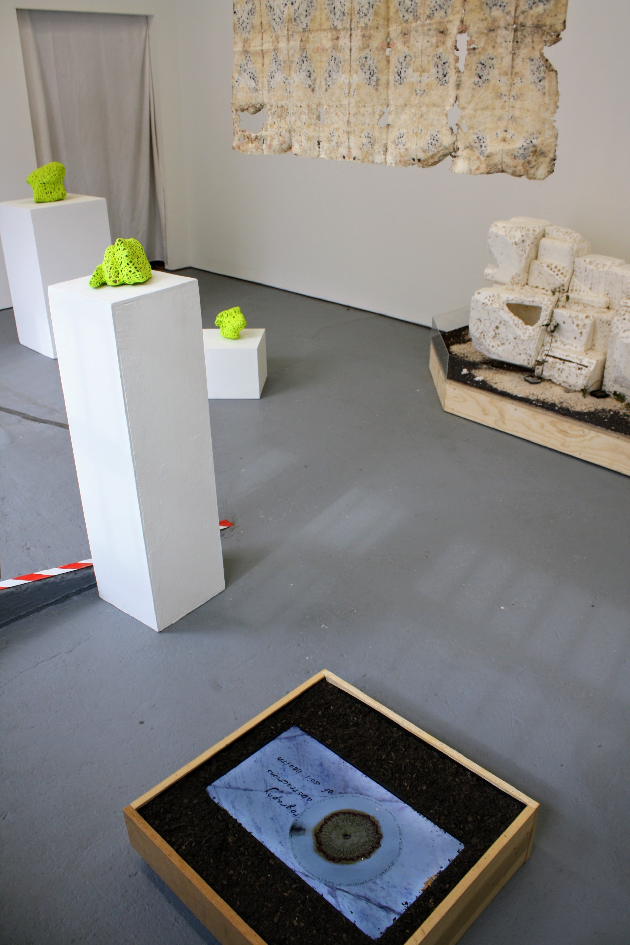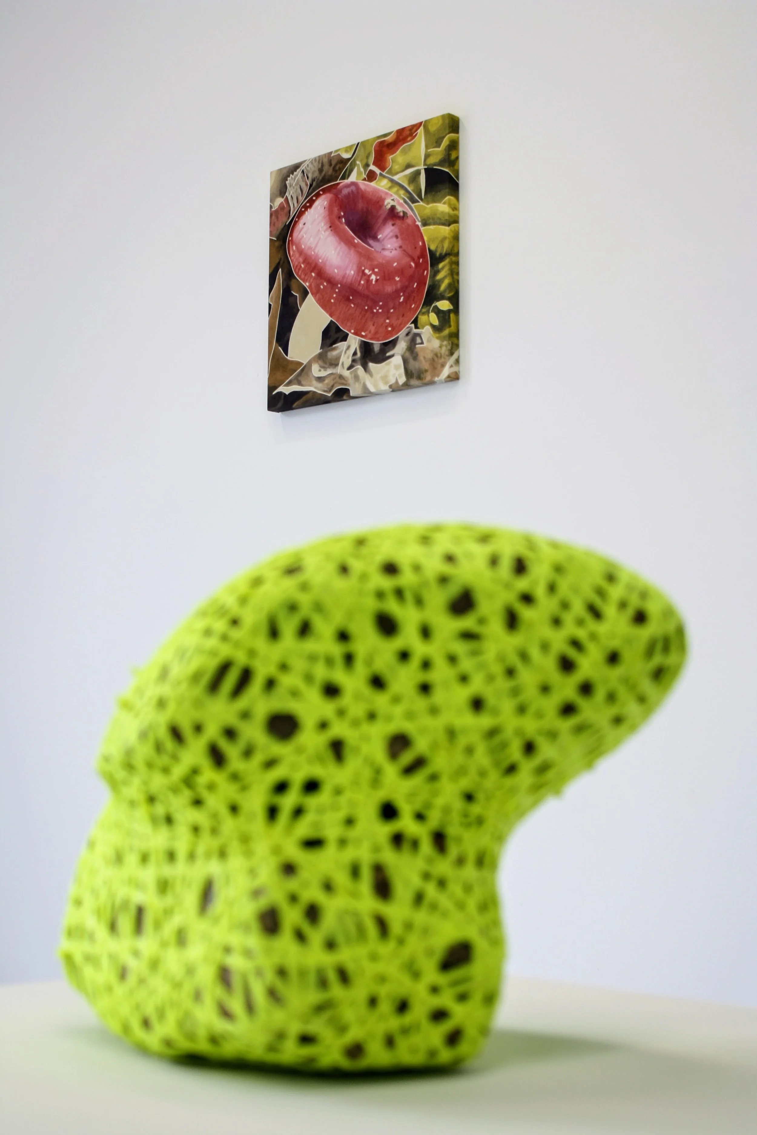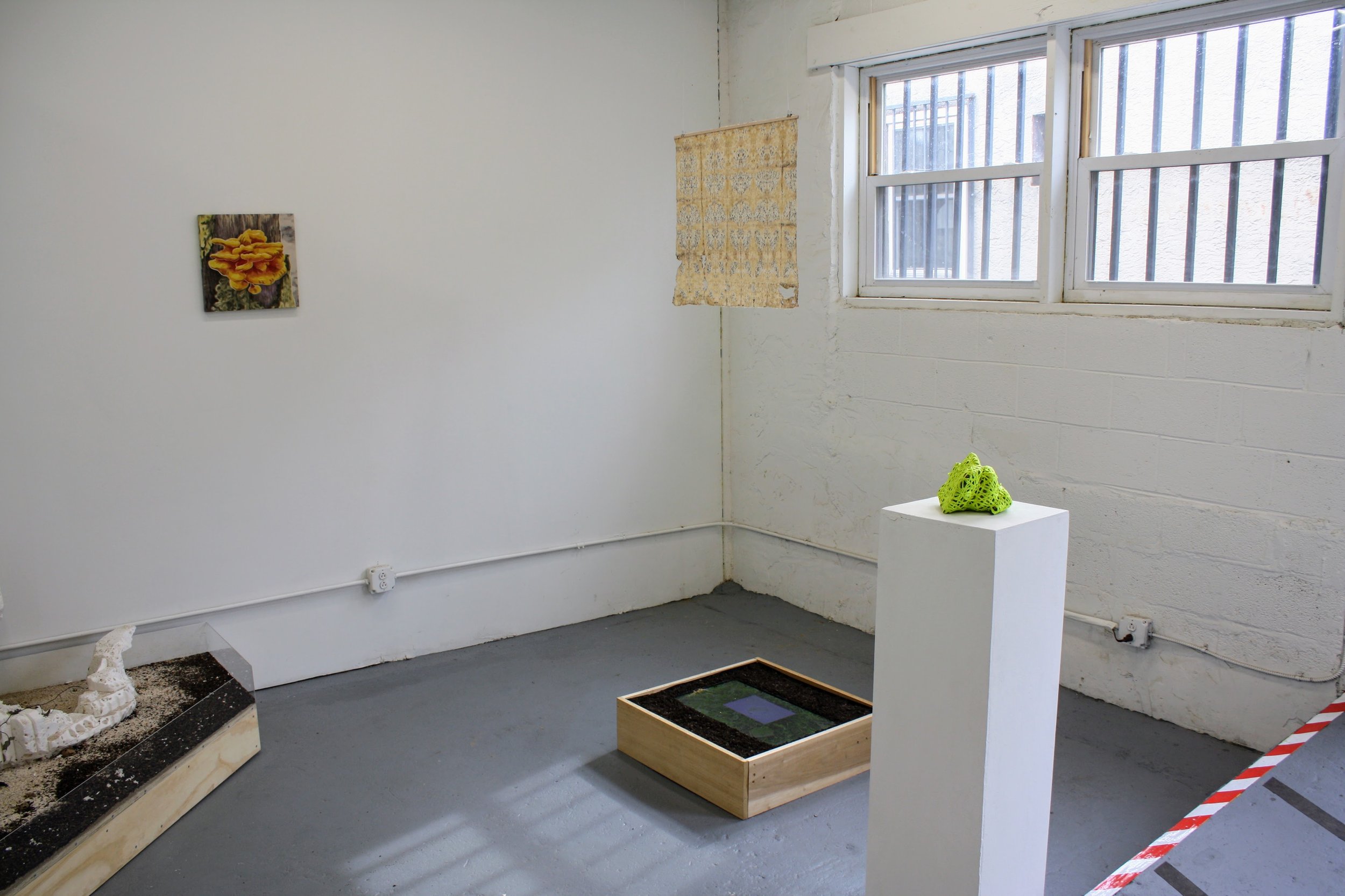 We Are All Compost is a group show of decomposing compositions of entanglement with the more-than-human world. Curated by William Schwaller, this exhibition brings together a diverse body of work by artists seeking symbiopoeisis with the environment, making with its critters and vibrant matter. Rooted in the materiality of the world around them, these artists embark on collaborations and entanglements with bacteria, composting insects, fungi, plants, soil, and stone in the composition of sculpture, painting, and video. Featuring: